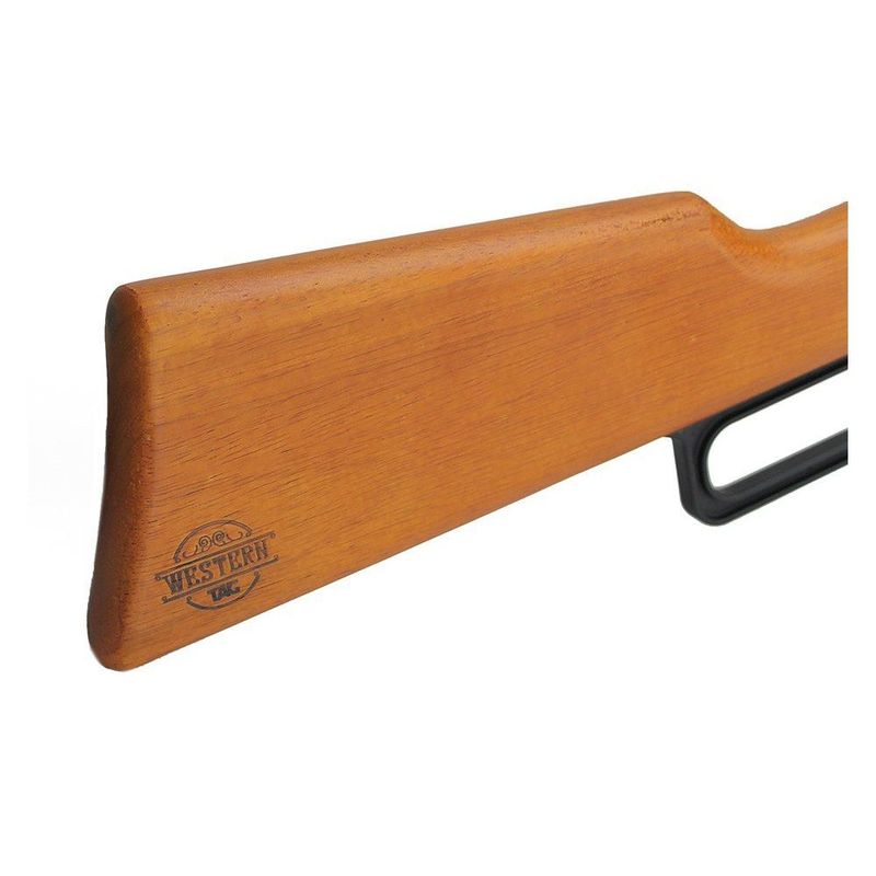 A Carabina TAG Western Cowboy trata-se de um modelo clássico com design que remete aos filmes de faroeste. Indicado para iniciantes, atividades de lazer e tiro a silhuetas/plinking. Sua alavanca under lever alimenta o mecanismo de disparo, o qual se utiliza esferas de aço de calibre 4,5mm, muito fácil e leve de armar, sem duvidas uma carabina muito bonita e divertida.