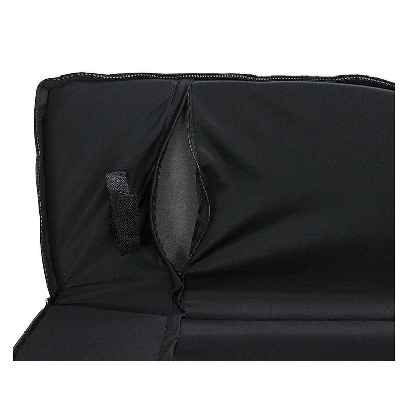 Design especial que permite acomodar o equipamento com luneta sem a necessidade de remoção, com espaço adicional. Fabricação de alta qualidade com materiais duráveis. Confeccionada em Nylon 600 ultra resistente, possui zíper robusto e bolsos laterais espaçosos para acessórios e espuma interna de 30mm com densidade 33 que proporciona proteção contra quedas e choques.