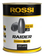 Chumbinho Rossi Slug Raider 5.5mm (200un) O Rossi Slug Raider 5.5mm combina velocidade e precisão, ideal para tiros de curta distância e alvos com grande impacto. Fabricado com ponta oca, oferece poder de expansão no alvo, sendo excelente para treinos e lazer.