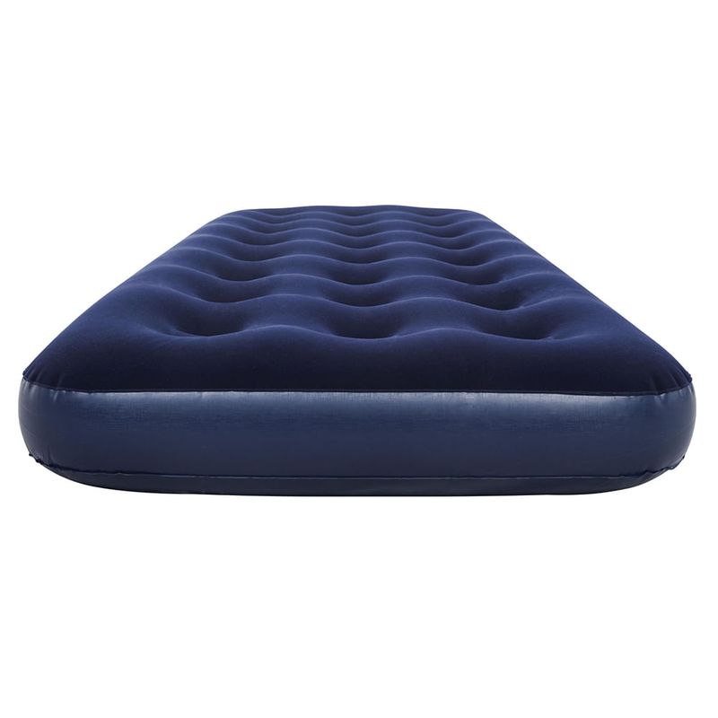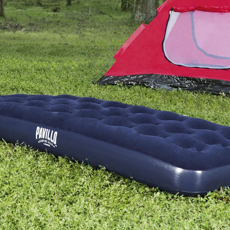 Colchão Inflável Solteiro Sem Inflador Incorporado - Bestway Conheça o modelo da Bestway tamanho solteiro! Indicado para 1 pessoa ou com o peso máximo suportado de até 150kg, esse modelo de colchão inflável é bem prático e simples de usar. De fácil manuseio, ele é fácil de inflar e desinflar, e quando não está em uso, apresenta um pequeno tamanho, sendo fácil para armazenar ou levar em suas viagens. O modelo solteiro da Bestway, conta com válvulas de liberação rápida interligadas, superfície de apoio confortável em flocos e estrutura com eixo de sustentação robusta, sendo deal para espaços internos e externos. Importante destacar que ele acompanha kit de reparo incluso e não acompanha fole ou inflador incorporado.