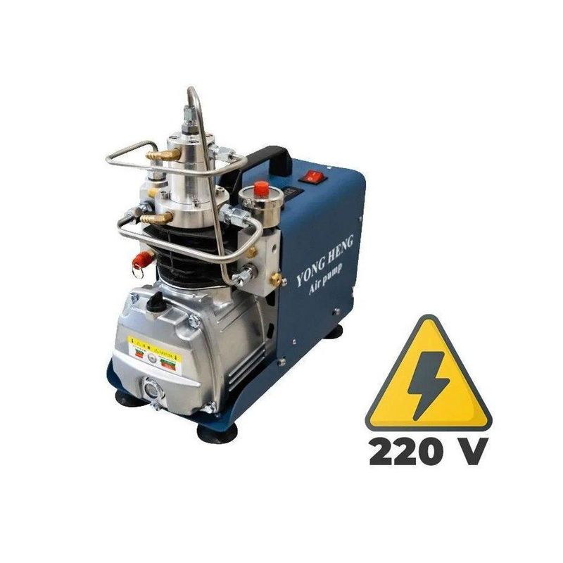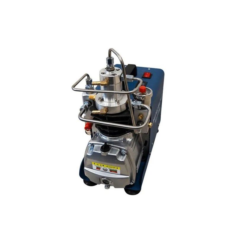 O Compressor Portátil de alta pressão é ideal para carabinas PCP e Cilindros de Scuba, possui dois estágios, é refrigerado com água. O compressor tem uma saída de ar de 50 litros por minuto, sendo possível ajustá-la conforme a sua necessidade. Possui a função Auto-Stop de parada automática e alarme. O Equipamento deve ser instalado em superfície plana.