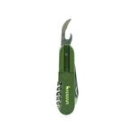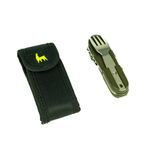Compacto e resistente, o conjunto reúne colher, garfo e faca, além de ferramentas essenciais como abridor de garrafa, abridor de lata, chave de fenda, perfurador e saca-rolhas. Tudo isso em um design inteligente, fácil de transportar e pronto para uso a qualquer momento.