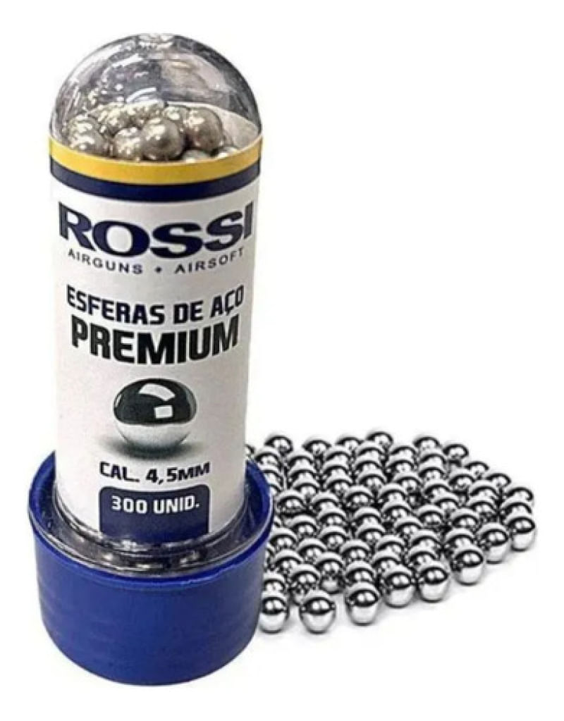 Alcance máximo desempenho com as esferas de aço Rossi Premium. Fabricadas com polimento industrial e distribuição de peso uniforme, garantem maior precisão, penetração e trajetória estável no disparo.