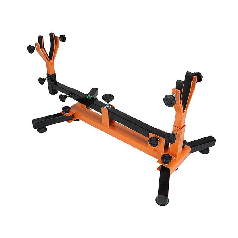 A Estativa Fixa é ideal para a sua oficina, pois você pode fixar peças para realizar manutenções, mas também serve para você deixar exposto sua carabina, como item de coleção, ou realizar regulagens na mesma.