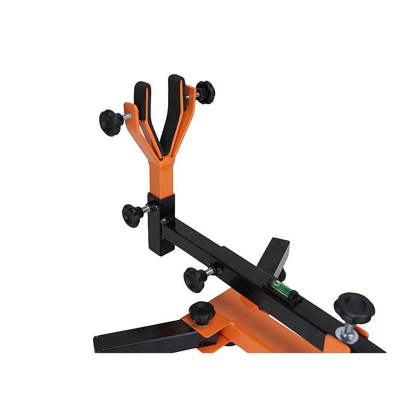 A pinça conta também, com ajustes laterais, permitindo que você fixe bem e trave a carabina em cima do suporte, evitando que a mesma fique desestabilizada, podendo causar a queda do equipamento.