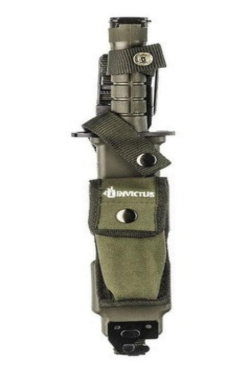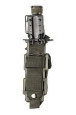 - Bainha em polímero com múltiplas funcionalidades - bolso destacável, alças em nylon, passador de cinto, alavanca corta arame, presilha de saque rápido e pedra de amolar