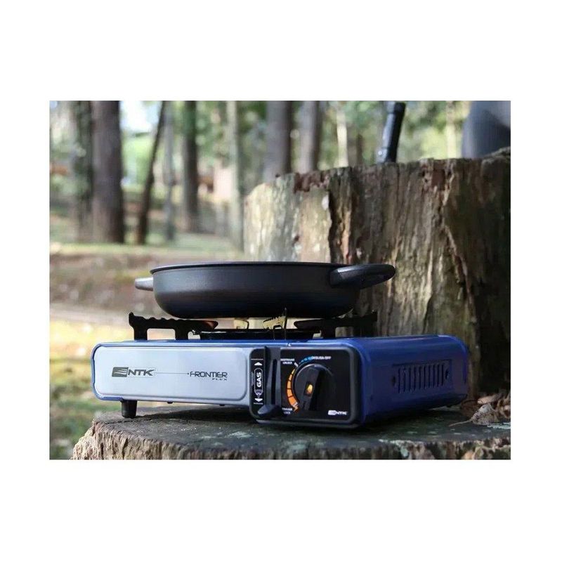 Informações gerais:• Material: Aço esmaltado com epóxi especial e base revestida com enamel atóxico• Tipo de cartucho: Cartucho de gás Campgás ou botijão tradicional• Consumo de gás: 145g/h• Medidas: 35cm (C) x 8cm (A) x 31cm (L)• Peso: 2,15kg• Marca: NTK