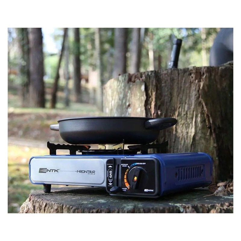 Informações gerais:• Material: Aço esmaltado com epóxi especial e base revestida com enamel atóxico• Tipo de cartucho: Cartucho de gás Campgás ou botijão tradicional• Consumo de gás: 145g/h• Medidas: 35cm (C) x 8cm (A) x 31cm (L)• Peso: 2,15kg• Marca: NTK