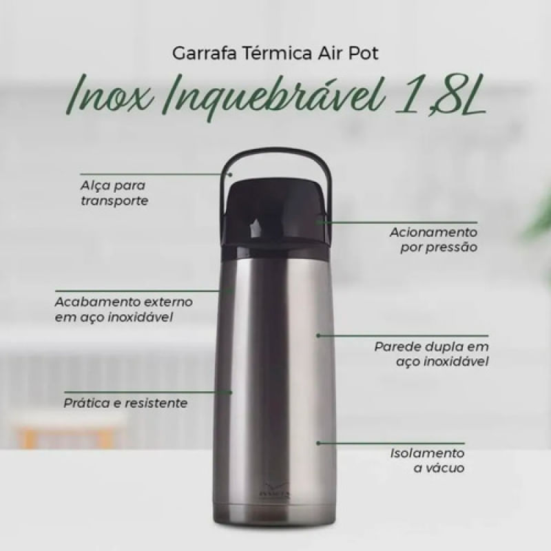 Garrafa Térmica Inquebrável Air Pot Inox 1,8L Invicta: Resistente e Eficaz