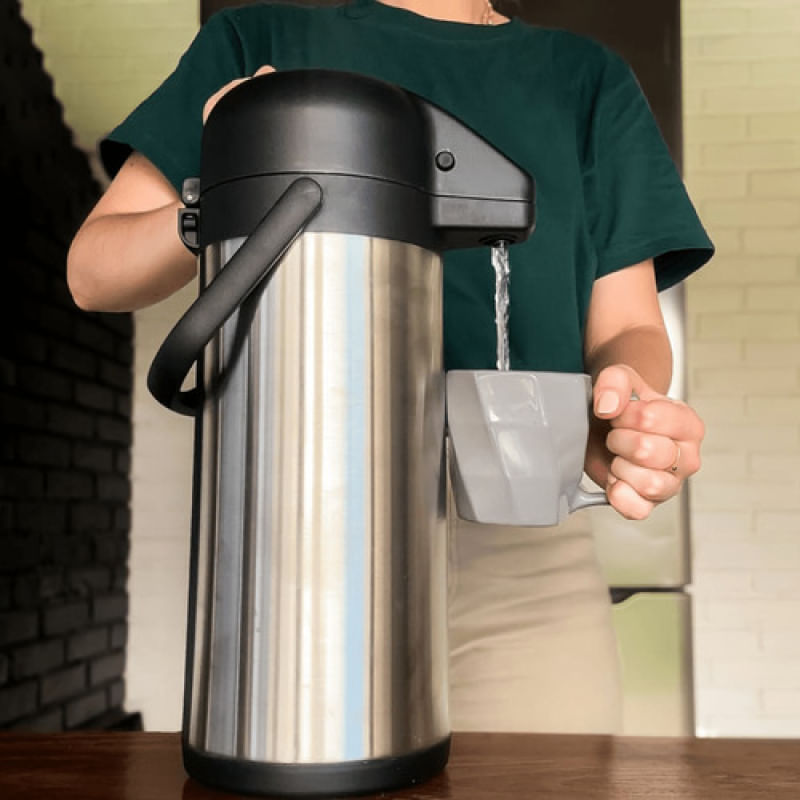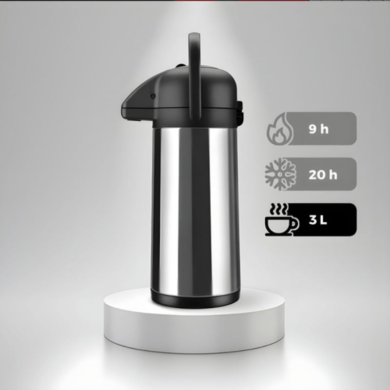 Com design moderno, a Air Pot Invicta em inox é perfeita para ambientes sofisticados. Ideal para uso doméstico ou profissional, combina durabilidade, praticidade e excelente conservação térmica.