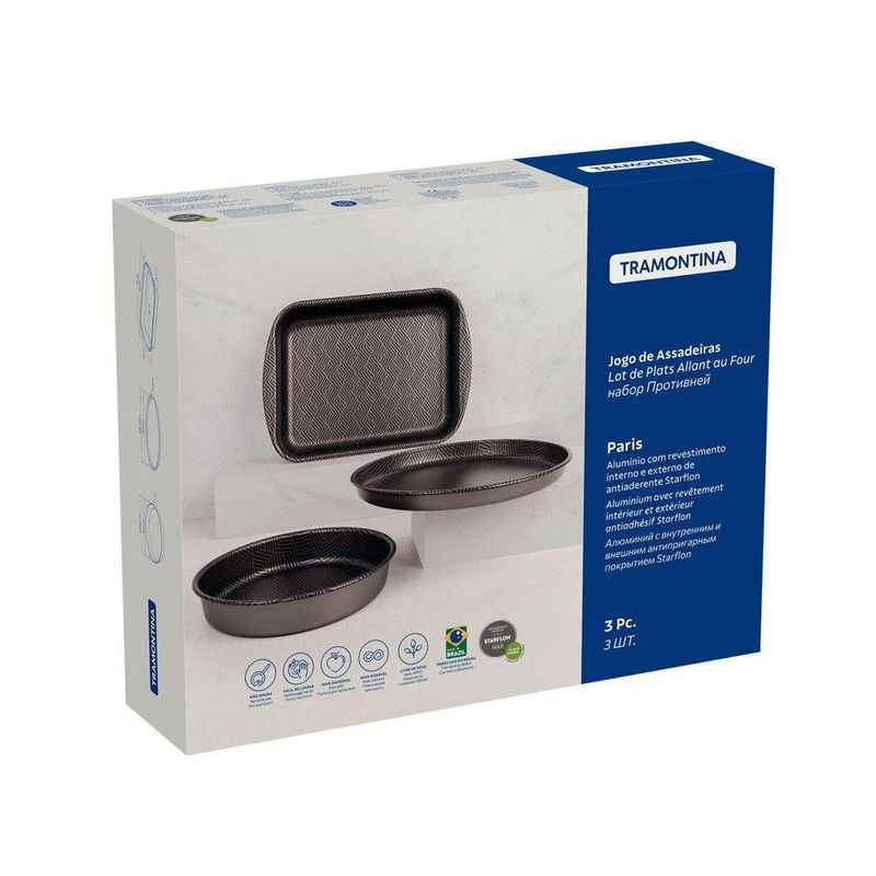 Jogo de Assadeiras Tramontina Paris 3 Peças – Alumínio com Revestimento Antiaderente Starflon Max