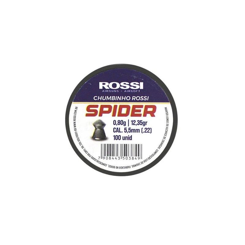 O Chumbinho Rossi Premium Spider 5,5mm (100un) é para tiros a curta e longa distância, seu formato arredondado e pontiagudo na ponta é perfeito e possibilita um maior impacto e precisão. Além de apresentar um design tecnológico e inovador, o produto é 100% original. Não deixe de garantir este produto incrível e potente.