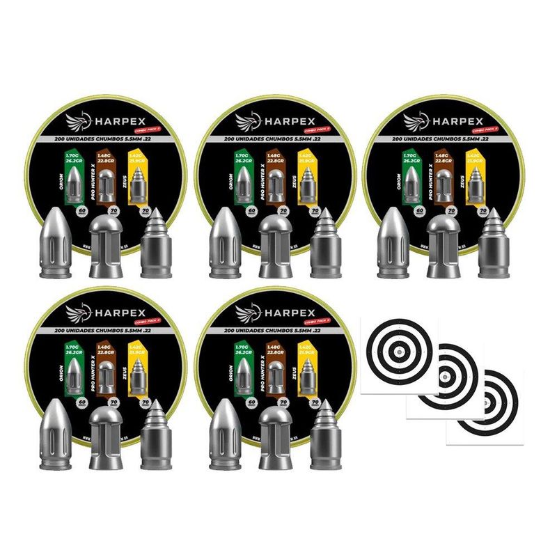 Kit 05 Cx MIX Chumbinho Harpex Orion, Pro Hunter X, Zeus 5,5mm 200 pcs/pot + Alvos
