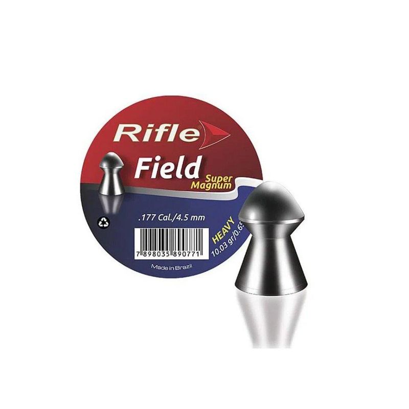 - 10x Chumbinho Rifle Super Magnum Field 4,5mm - 250 UndATENÇÃO: Nos combos que acompanham capa, esta não comporta a luneta acoplada à carabina, somente desmontadas.