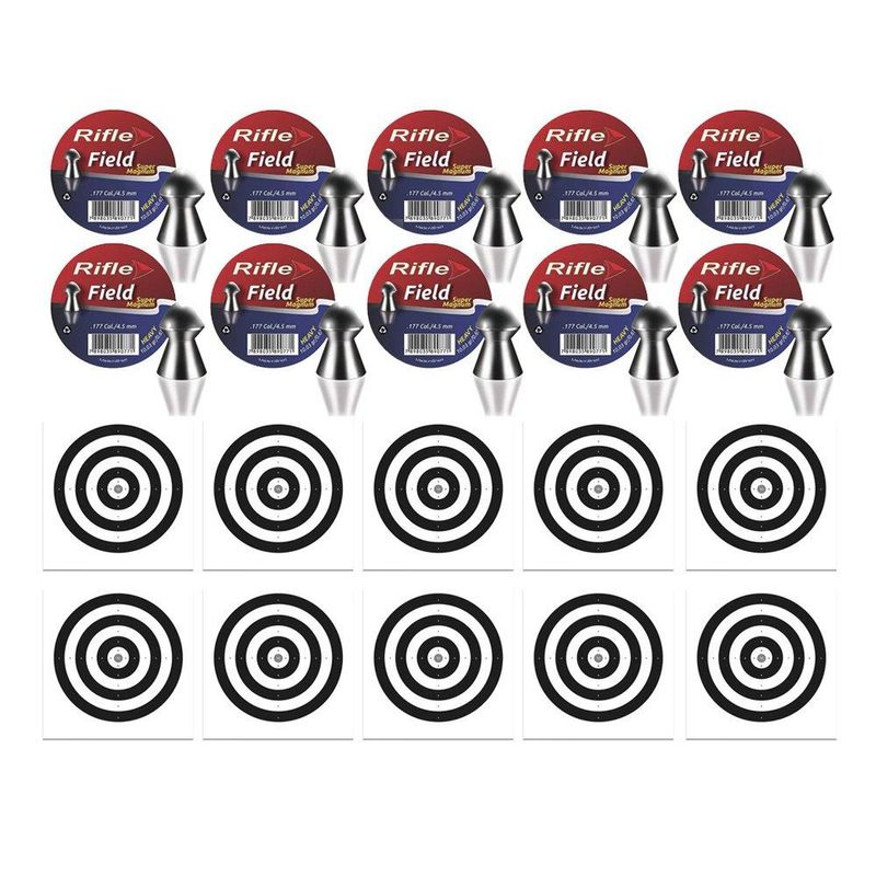 Kit 10 Chumbinho Rifle Super Magnum Field 4,5mm - 250 Und + 100 Alvos