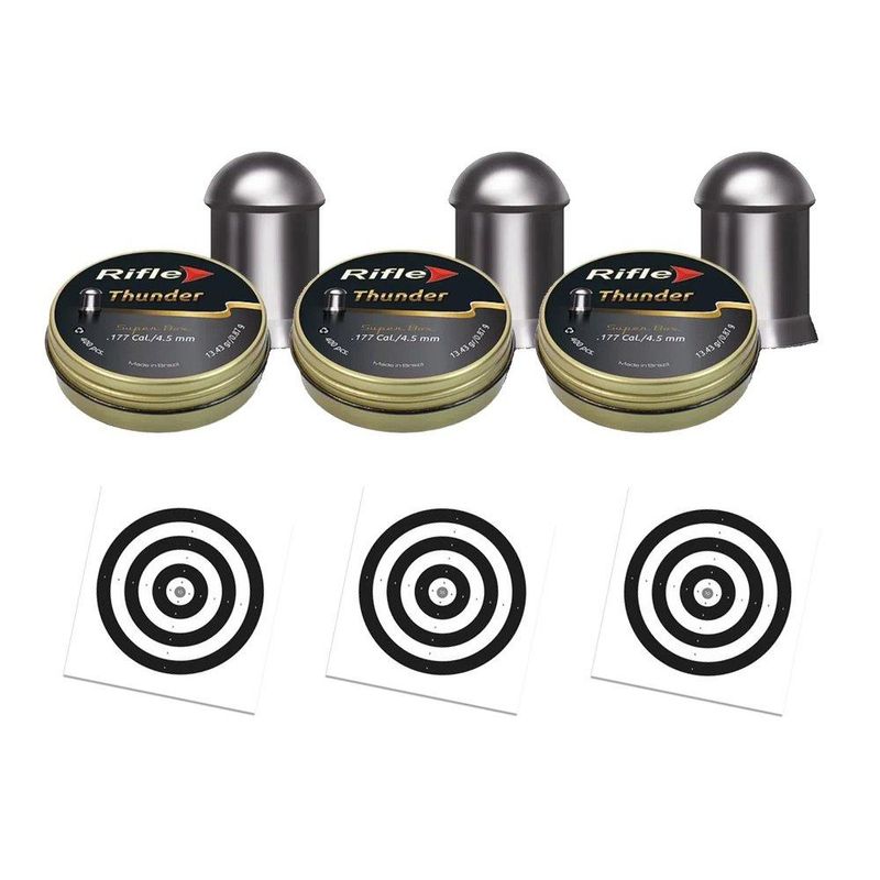 Kit 3 Chumbinho Rifle Thunder Super Box 4,5mm - 400 Un + 30 Alvos