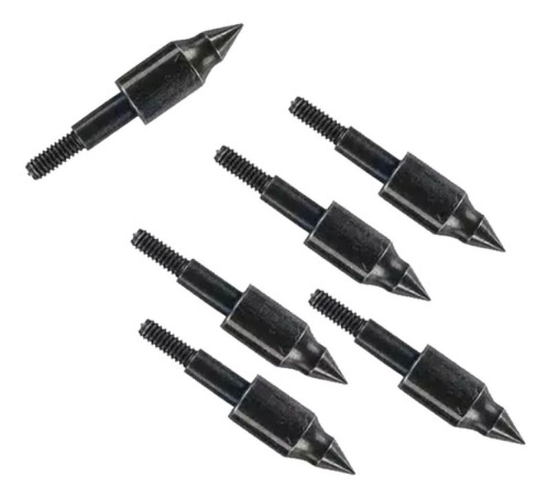 Esse Kit com 6 flechas de alumínio possui um corpo em alumínio resistente e possui a sua ponteira é rosqueável. Essas ponteiras são de metal com ponta pontiaguda e podem ser substituídas por ponteiras para caça, pesca, etc. Flechas indicadas para Bestas / Balestras de 120 até 180 Libras.