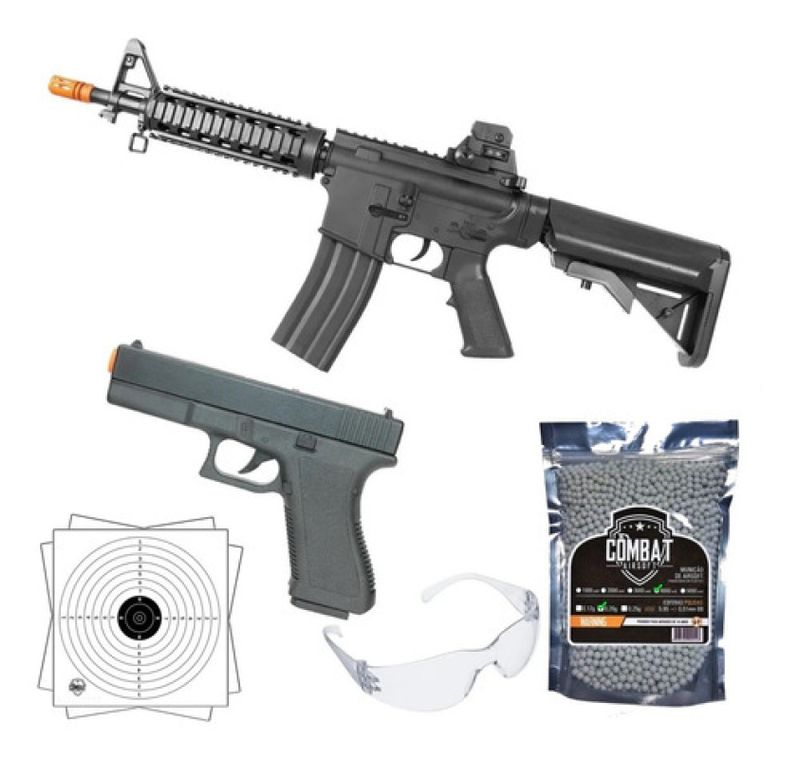 Kit Rifle de Airsoft VG M4RIS-CQB 8907 Spring 6mm + Pistola Spring Vigor Glock GK-V307 Airsoft