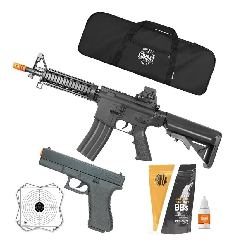 Kit Rifle de Airsoft VG M4RIS-CQB 8907 Spring 6mm + Pistola Spring Vigor Glock GK-V307 Airsoft