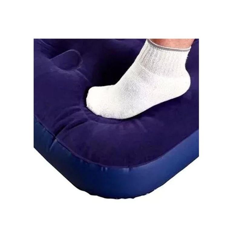 Possui inflador acoplado tipo fole. Basta pressionar repetidas vezes no canto inferior do colchão para inflá-lo.