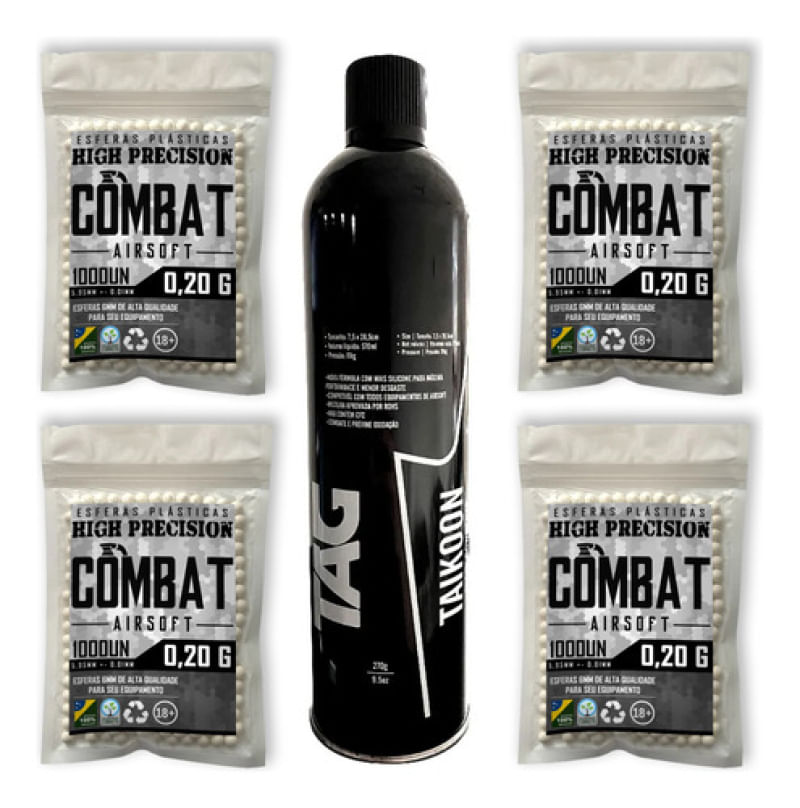 Kit Bbs Combat Airsoft 0.20g 4000un + Green Gas Taikoon Ntk