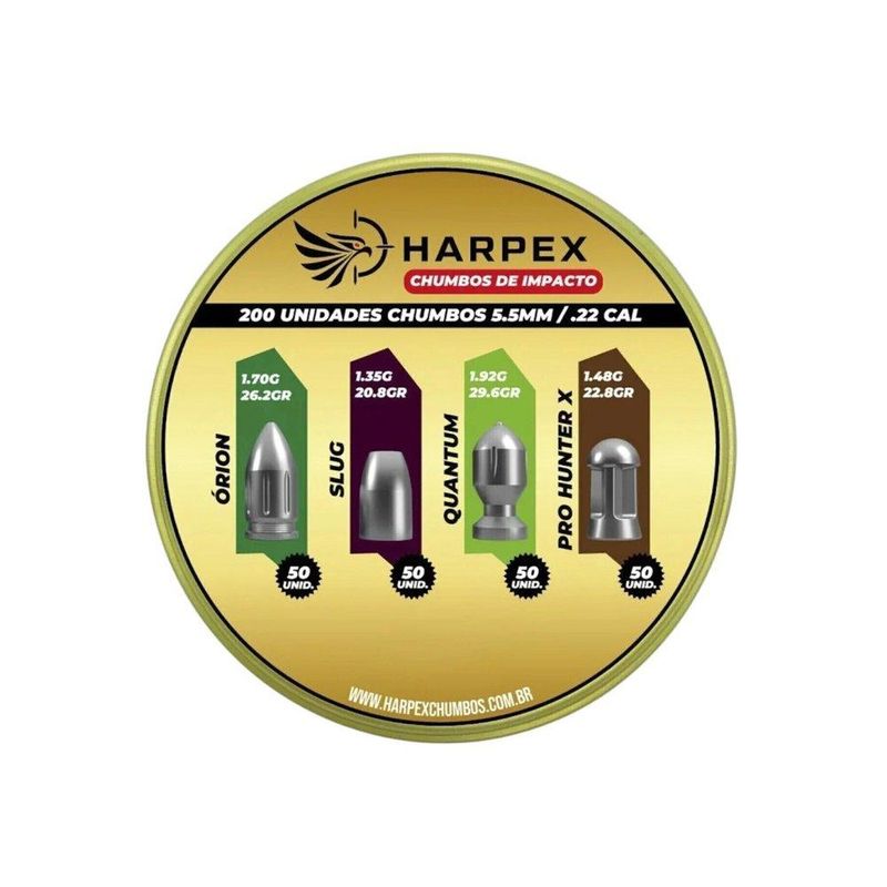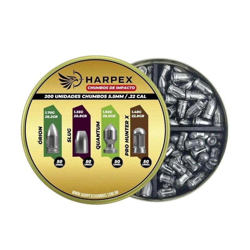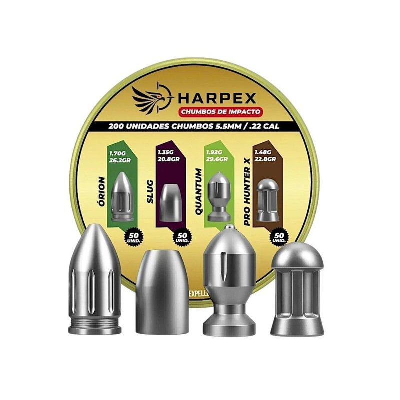 Kit Chumbinho teste Harpex Combo de Impacto - Orion, Slug, Quantum, Pro Hunter X 5,5mm 200 Un