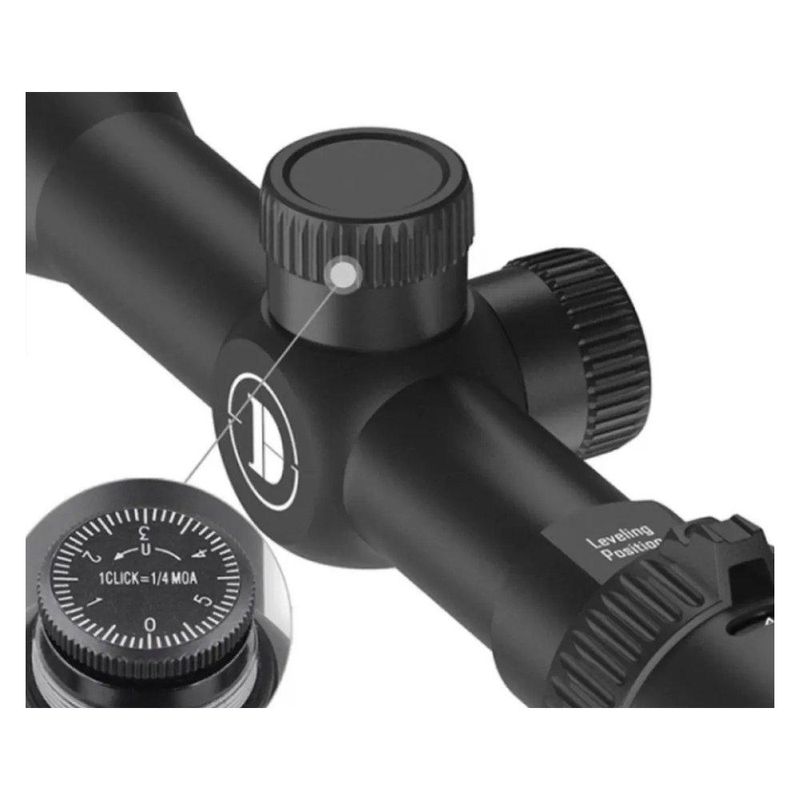 Equipada com retículo Mildot, permite estimativa de distância e compensação de tiro. Os ajustes horizontais e verticais possuem clique de 1/2 MOA, garantindo regulagem fina e precisa. Compatível com trilhos de 22 mm, acompanha mounts, tampas protetoras e acessórios essenciais para uma instalação rápida e prática.