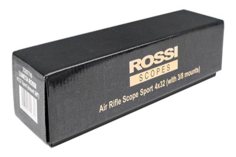 Luneta Rossi Sport Para Carabinas 4x32 Mounts 3/8 Luneta 4x32 Rossi Sport preta, com ajuste de foco e torres de regulagem vertical e horizontal com ajuste por click (1 click = 1/2"). Não precisa de chave para realizar os ajustes o que torna super prática!