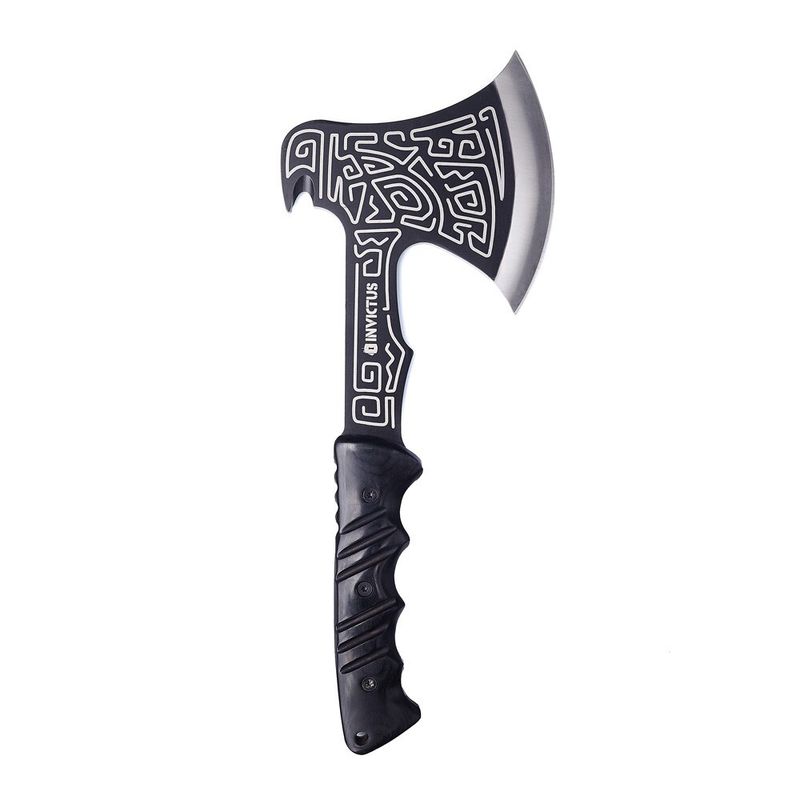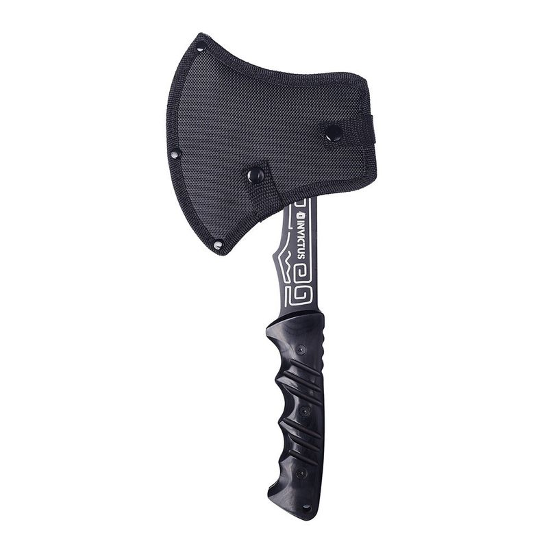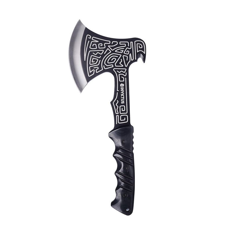 O Machado Invictus Bjorn - Texturizado compõe o portfólio de machados para uso tático da INVICTUS. Ele possui lâmina Full Tang em aço inoxidável 3cr13, com 5 mm de espessura, corta-cinto, porta-fiel e cabo em madeira. Ainda, sua empunhadura é anatômica e acompanha também bainha em Nylon. O Machado Bjorn está disponível em dois acabamentos: preto fosco texturizado e preto fosco com gravação rune.