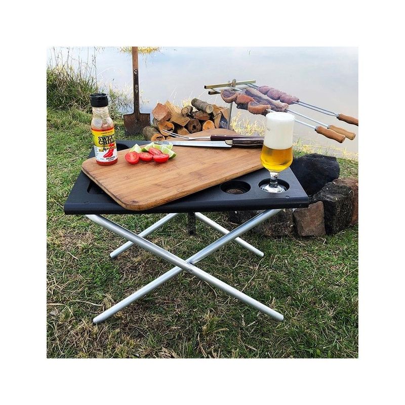 Mesa camping Dobrável Portátil De Alumínio Camping Praia Churrasco Multiuso Preta - Zaka