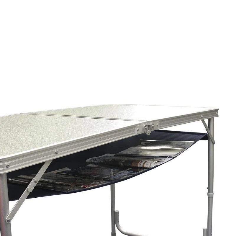 A mesa Top da Nautika é um modelo indicado para camping, pois contém todos os requisitos necessários: leveza, praticidade e facilidade de transporte. Basta abrir a maleta, que é o formato na qual ela vem, e já está pronta para o uso. Este formato facilita infinitamente a forma de transporte, pois não necessita, dessa maneira, de outro instrumento para carregá-la. Sua estrutura é confeccionada em alumínio, a tampa em MDF aluminizado que não impregna sujeira e seu organizador, que está localizado na parte debaixo da mesa é fabricado em poliéster Oxford. Fácil de instalar e montar, a Mesa Top é prática desde seu transporte até o uso e desmontagem, além disso, suporta até 40kg. A mesa dobrável em alumínio com organizador Top Nautika, é o modelo ideal para praticantes de campismo que buscam um produto para garantir maior conforto durante suas aventuras.