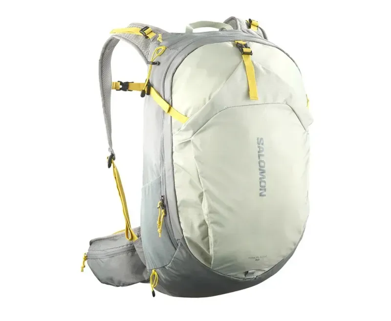 Mochila Salomon Trailblazer 30 Sedona Sage/Seagrass/Iron Se você procura uma Mochila de alta qualidade e com tecnologia de resistência, a Mochila Salomon Trailblazer é a escolha certa, conta com capacidade para 30 litros, compartimento para reservatório de hidratação, além de muitos bolsos internos e externos. A Salomon é mais que uma marca, é uma referência no mercado esportivo! Com uma vasta gama de roupas, calçados e equipamentos esportivos, a marca inova constantemente na criação de seus produtos. Com origem nos Alpes Franceses, a Salomon exporta seus acessórios para todo o mundo, sendo renomada, principalmente, nos esportes de montanha. Para a sua trilha, aventura outdoor ou atividades ao ar livre ficarem completas, você precisa ter uma mochila resistente para levar todos os seus equipamentos. Pensando nisso, a Salomon lançou um de seus acessórios mais inovadores, que combina praticidade e eficiência até mesmo para uso diário. Uma de suas principais novidades é sua alta capacidade interna, sendo ela de 30 litros, ou seja, você tem espaço de sobra para levar todos os seus equipamentos para a sua aventura. Além disso, seu design foi projetado para máxima otimização de espaço, fazendo toda a diferença nas suas trilhas. Esse modelo possui ainda compartimento interno específico para reservatório de hidratação, sendo assim, você pode ter acesso rápido à água, mantendo você hidratado em períodos longos de caminhadas. A principal tecnologia empregada nessa mochila é seu sistema de gerenciamento de carga, desenvolvido para proporcionar equilíbrio durante o uso. Esse sistema possui tiras de compressão elásticas, ajuste peitoral extensível e alças de levantamento de carga, mantendo seu acessório estável e próximo ao corpo, pronta para ser utilizada em todos os ambientes. Conforto também é uma das prioridades da Salomon, por isso, essa peça de vestuário possui arnês 3D com espuma ventilada e o cinto de quadril acolchoado com EVA proporcionando respirabilidade e suavidade mesmo com a mochila cheia de equipamentos, ideal para pessoas que vão utilizar por longos períodos. Compartimento é o que não falta na Salomon Trailblazer 30 e esse modelo possui: