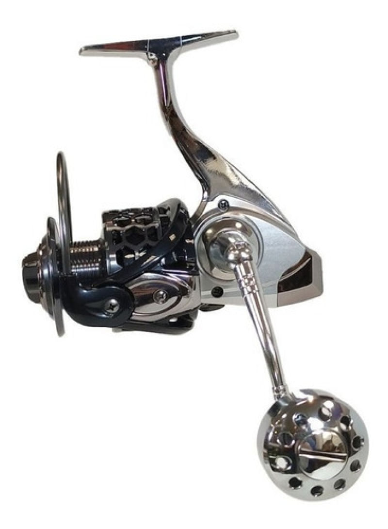 O pinhão do molinete é em latão maciço e todas as engrenagens em Zamac de alto impacto, com manivela também em alumínio maciço e esfera anatômica, proporcionando maior firmeza e estabilidade nas pescarias.