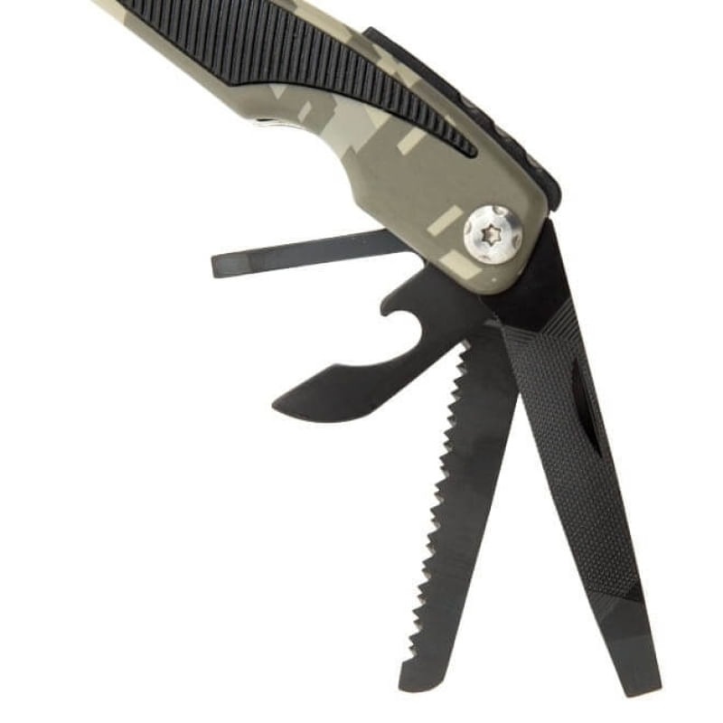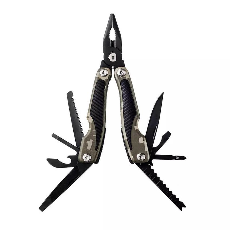Multitool Invictus Precision 9 Funções Aço Inox Compacto e resistente, o Multitool Invictus Precision é a ferramenta ideal para aventuras e uso diário. Com estrutura em aço inox 420 e cabo antiderrapante camuflado, reúne 9 funções em um design prático e durável.