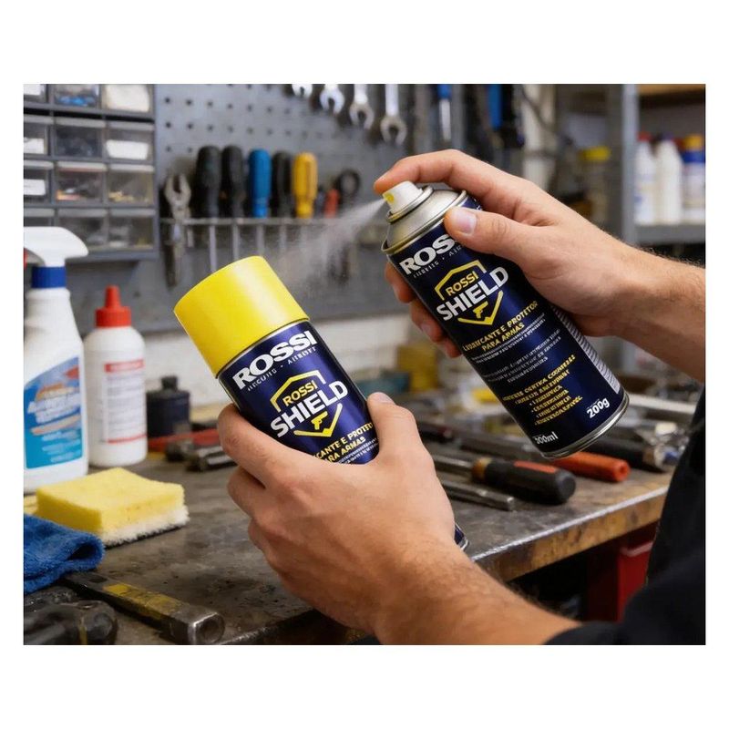 O óleo lubrificante spray Rossi Shield de 300 ml é ideal para quem busca proteção e eficiência em armas, airguns e carabinas. Com um super micro óleo hidrorrepelente, ele proporciona alto poder de proteção contra a corrosão, criando uma camada que preserva as partes metálicas mesmo nas condições mais adversas. Este produto se destaca por sua resistência comprovada de até 200 horas em testes de salt spray, oferecendo proteção prolongada contra ferrugem e desgaste, especialmente em ambientes úmidos ou salinos.