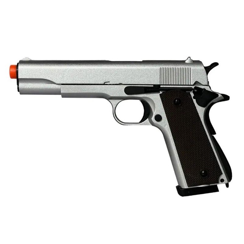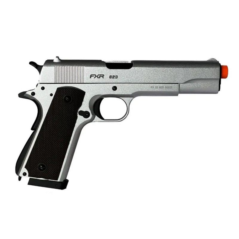 Pistola de Airsoft CO2 1911 Silver Blowback Double Bell 823 6mm - FXR Armas + BBS+ Co2 + Alvos + Óleo de Silicone + Kamuff + Kit de Limpeza