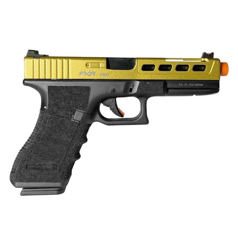 Pistola de Airsoft GBB GK G17 Custom Double Bell 17/750 Dourado Cal 6mm - FXR Arms + GBB + BBS + Alvos + Óleo de Silicone + Kamuff + Laser