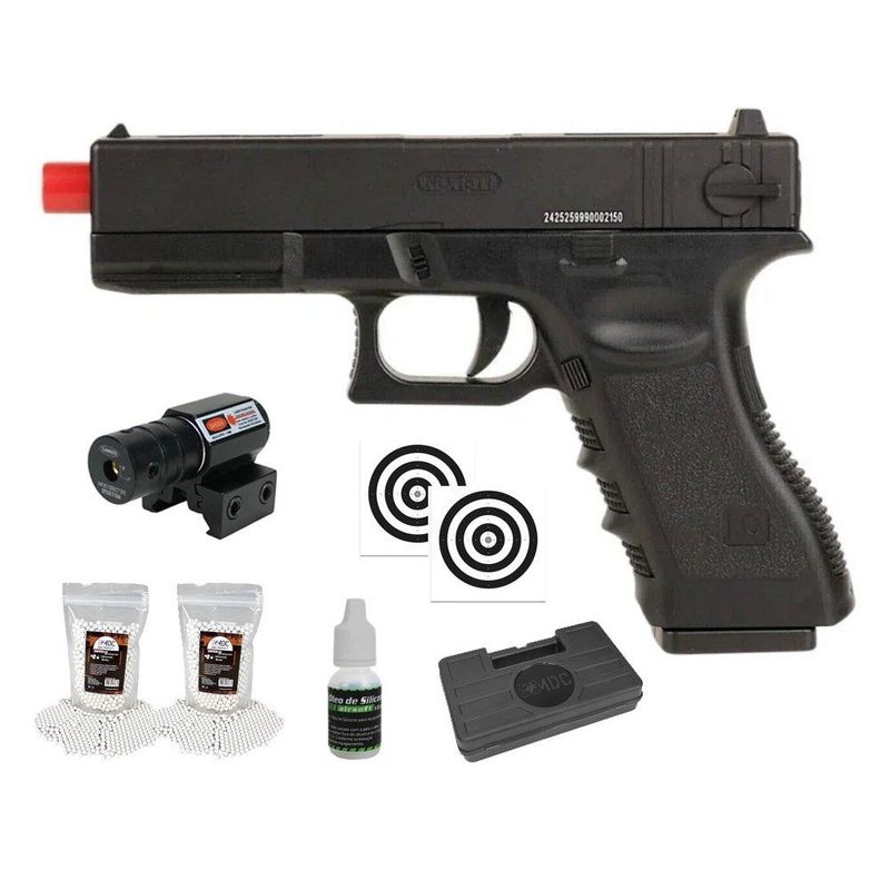 Pistola de Airsoft GK CBT G17 Slide Metal Spring 6mm - Combat + Alvos + BBS + Case + Laser + Óleo de Silicone