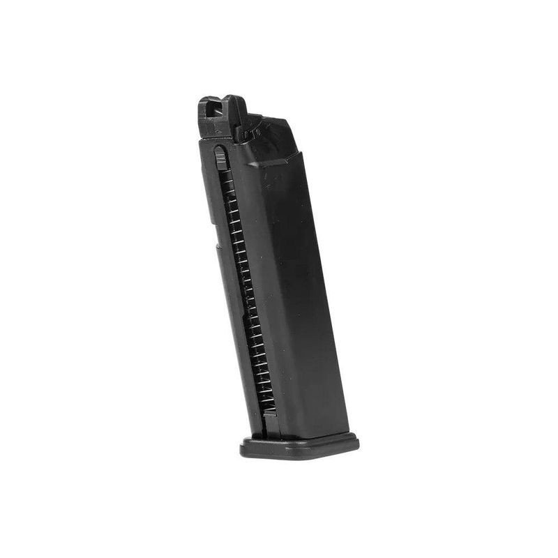 Conta com magazine padrão com capacidade para até 23 bbs, ou seja, muito tempo de disparos sem a necessidade de recarregar. Além disso, possui modo de ação e propulsão através de Green Gas, inserido na parte inferior do magazine, sendo um dos principais motivos para o alto desempenho dessa arma.