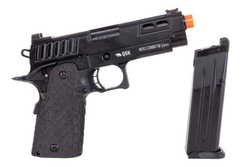 Pistola Airsoft Gás GBB M1911 Combat Full Metal Blowback A Pistola Airsoft GBB M1911 Combat da QGK é a escolha ideal para amantes do tiro esportivo. Inspirada na clássica 1911, combina design robusto, alto realismo com sistema Blowback e construção Full Metal, garantindo resistência e disparos precisos com Green Gas.