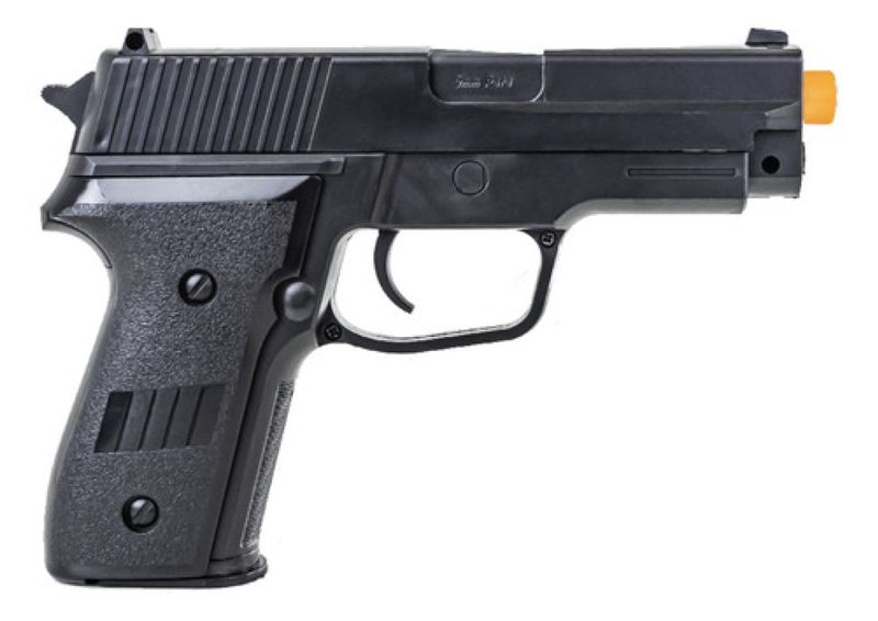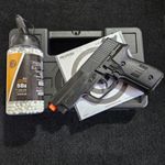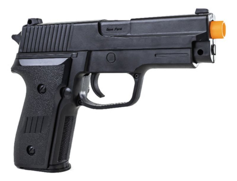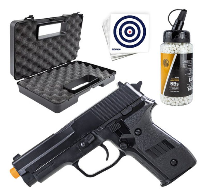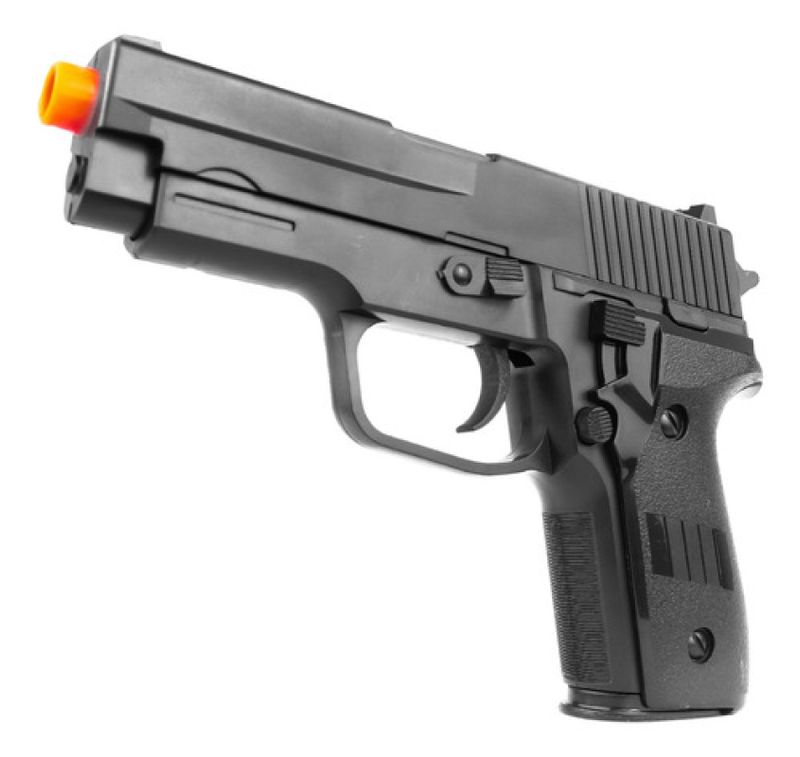 Pistola Airsoft P226 2124 Mola + Combo completo - Vigor A Pistola Airsoft P226 2124 da Vigor é uma réplica fiel da icônica P226, perfeita para iniciantes e colecionadores. Com corpo em polímero de alta resistência e sistema de mola (spring), oferece desempenho confiável com velocidade de 180 FPS (55 m/s). Seu design realista e magazine para 12 BBs garantem uma experiência autêntica de airsoft.