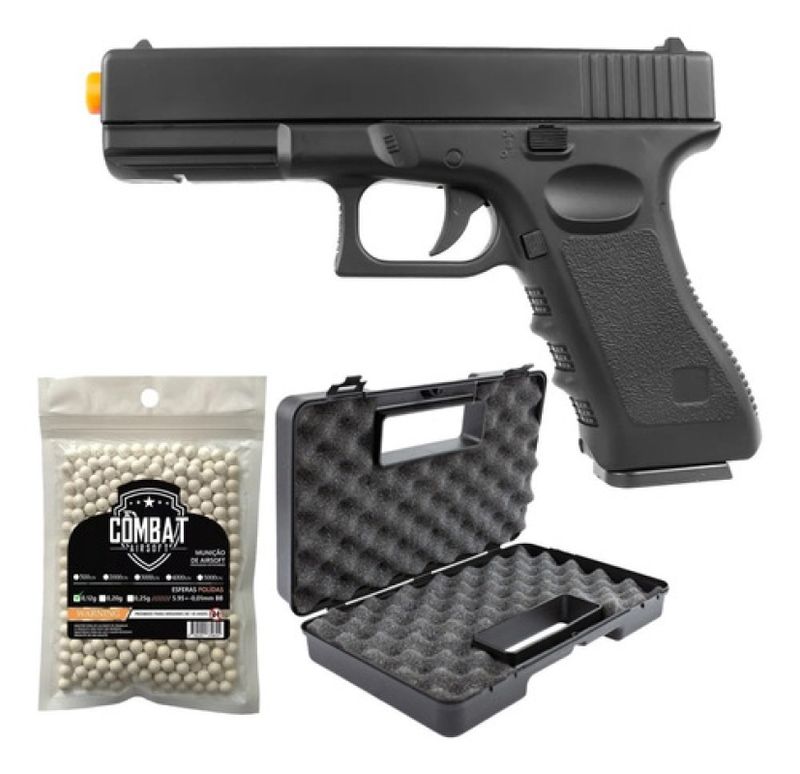 Pistola Airsoft Mola Full Metal Vigor - Gk-v20 + BBs + Maleta A Pistola De Airsoft modelo Glock GK-V20 é categorizada como Spring, ou seja, seu funcionamento é através de mola. Réplica da pistola Glock, que em 1983 foi adotada oficialmente pelo Exército Austríaco.