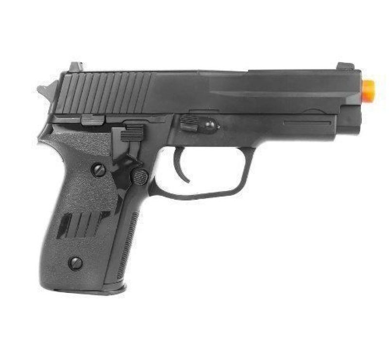 Pistola De Airsoft Vigor Vg P226 2124 Mola 6mm Spring A Pistola de Airsoft VG P226 é um equipamento com corpo em polímero, produzido pela Vigor, com tamanho e marcações semelhantes a arma original P226. Sua velocidade de disparo alcança 180 de fps por 55m/s* com BB's 0,20g Características: