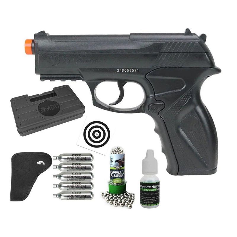 Pistola De Pressão Co2 C11 Esferas De Aço 6mm Wingun + Case + Alvos + BBS + Co2 + Coldre + Óleo de Silicone