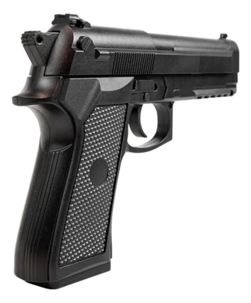 Pistola de Airsoft Spring PT92 V21 6mm Rossi A PT92 V21 é ideal para iniciantes no airsoft, combinando realismo e praticidade. Com construção em polímero resistente, modo de ação por mola e trilho picatinny de 22mm, oferece disparos precisos a 135 FPS. Compacta e eficiente, é perfeita para treinos e lazer.