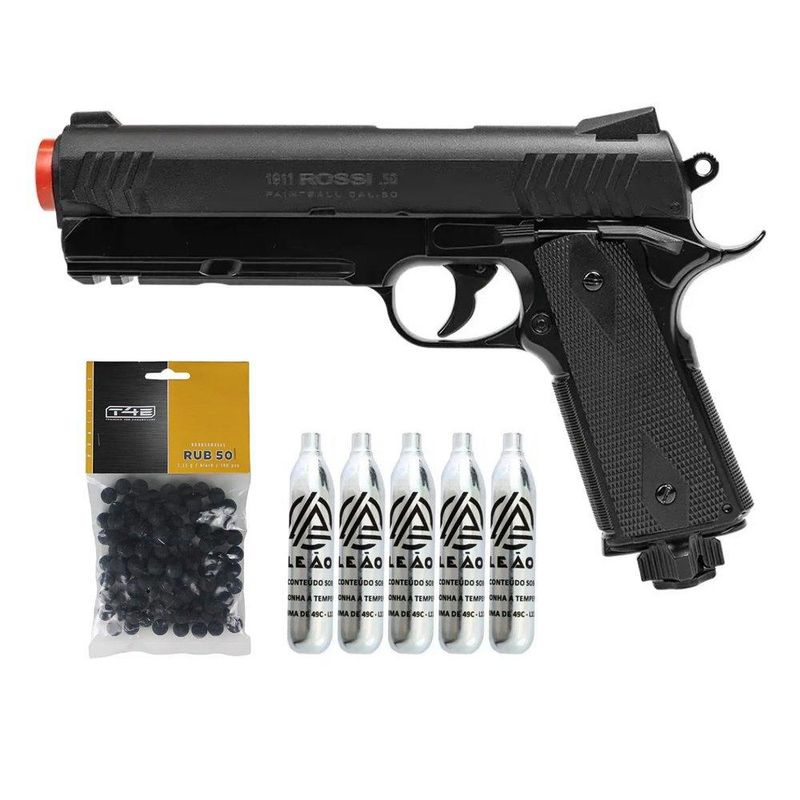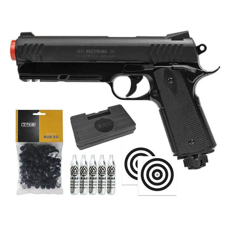 Pistola de Pressão Rossi 1911 CO2 .50 Home Defense Paintball + Co2 + Esferas de Borracha + Case + Alvos