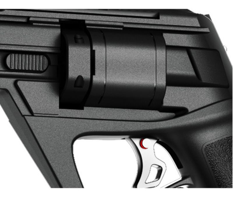 Possui sistema de fácil aperto para o cilindro de co2 que vai encaixado na empunhadura do Revólver CP300.