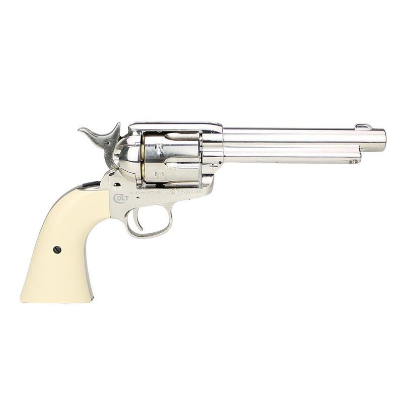Inspirada no modelo de fogo Peacemaker “Colt Single Action Army”, esta versão possui design clássico, com acabamento de primeira linha. Uma de suas grandes características é sua munição, sendo capaz de disparar esferas de aço calibre 4.5mm com grande velocidade!