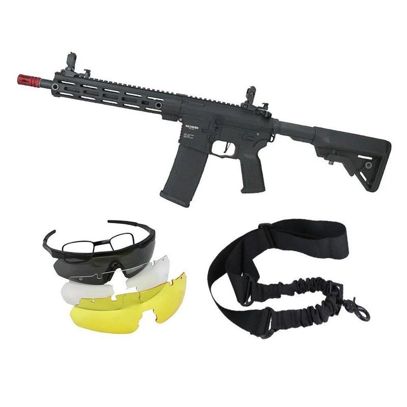 Rifle de Airsoft AEG AR15 Neptune 10" Plus Gatilho ETU Programável 6mm - Rossi + Bandoleira + Óculos de Proteção Tático