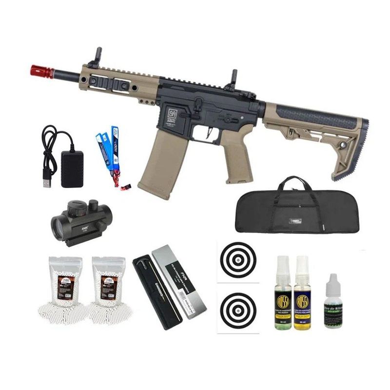 Rifle de Airsoft AEG SA-F04 Half Tan FLEX HAL ETU Gen 2 - Specna Arms + Capa + BBS + Alvos + Red Dot + Óleo + Laser + Kit de Limpeza